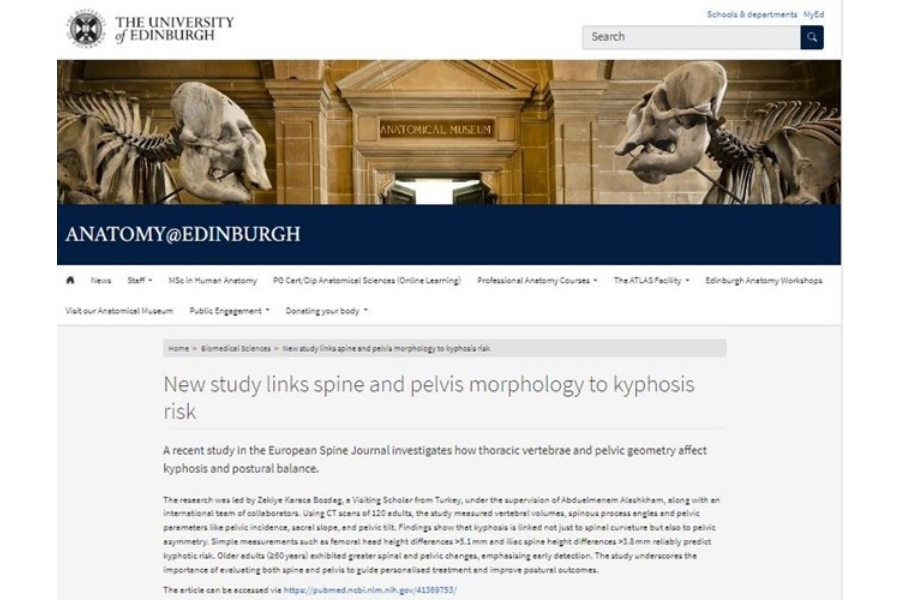 Edinburgh Üniversitesi’nin resmi anatomi sayfasında yayımlanan haberlerde, söz konusu çalışmaların omurga morfolojisi ve vertebral anatomi alanındaki bilimsel katkılarına dikkat çekilmekte ve araştırmaların uluslararası akademik iş birliği kapsamında yürütüldüğü vurgulanmaktadır.