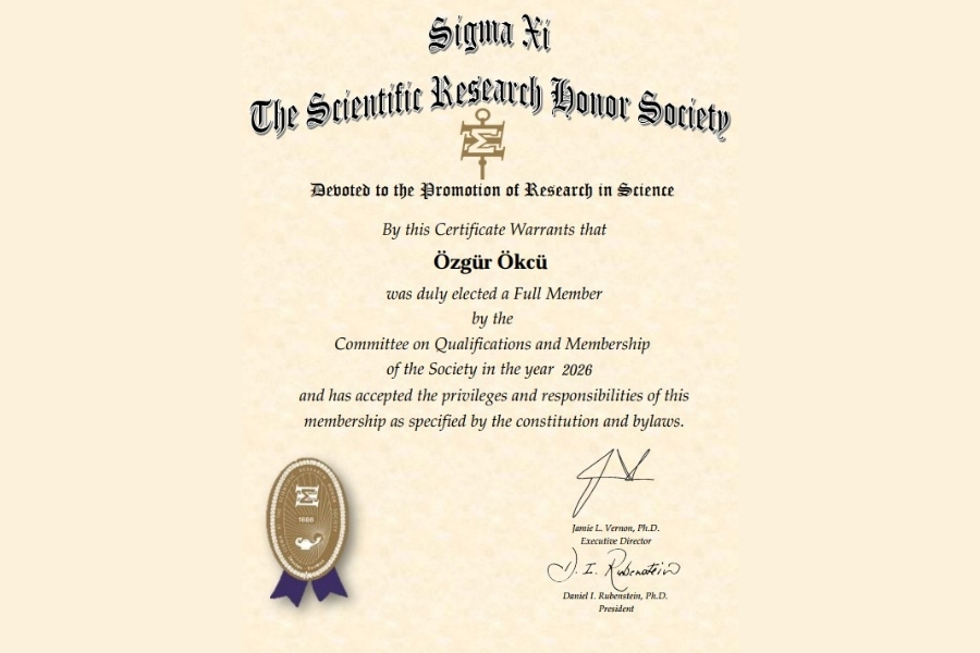 İstanbul Yeni Yüzyıl Üniversitesi yarı zamanlı öğretim üyesi Dr. Özgür Ökcü, dünyanın en köklü ve saygın bilim topluluklarından biri olan Sigma Xi – The Scientific Research Honor Society tarafından tam üyeliğe (Full Membership) kabul edildi.