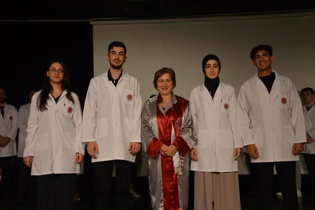 Diş Hekimliği Fakültesi 1. ve 2.sınıf öğrencileri akademisyenleri tarafından kendilerine takdim edilen beyaz önlüklerini giyerek mesleğe ilk adımlarını attılar.