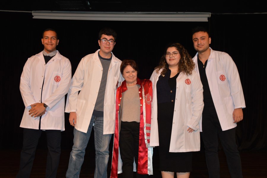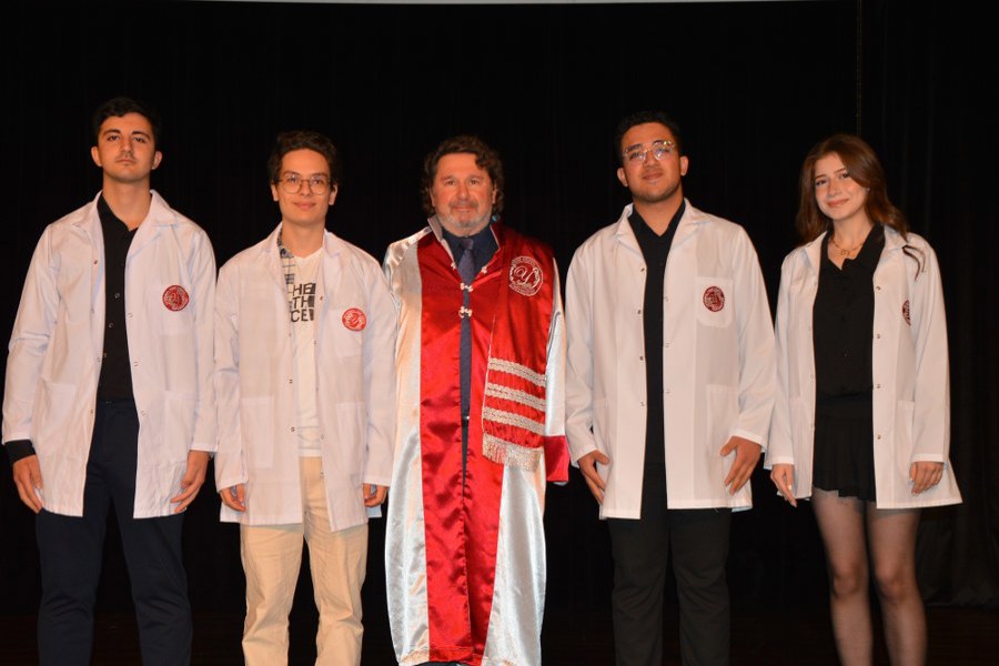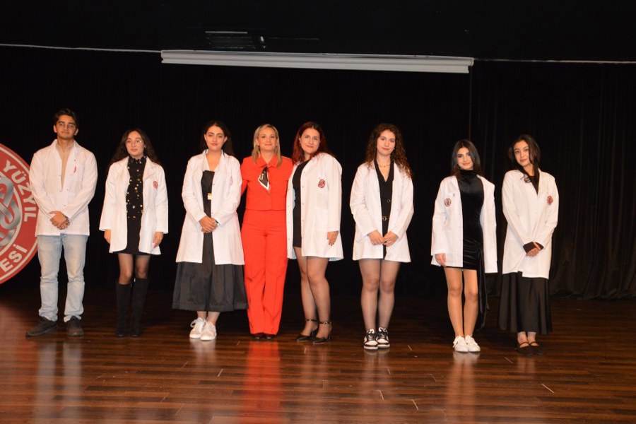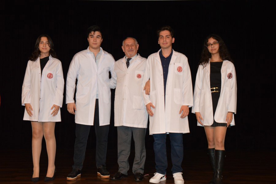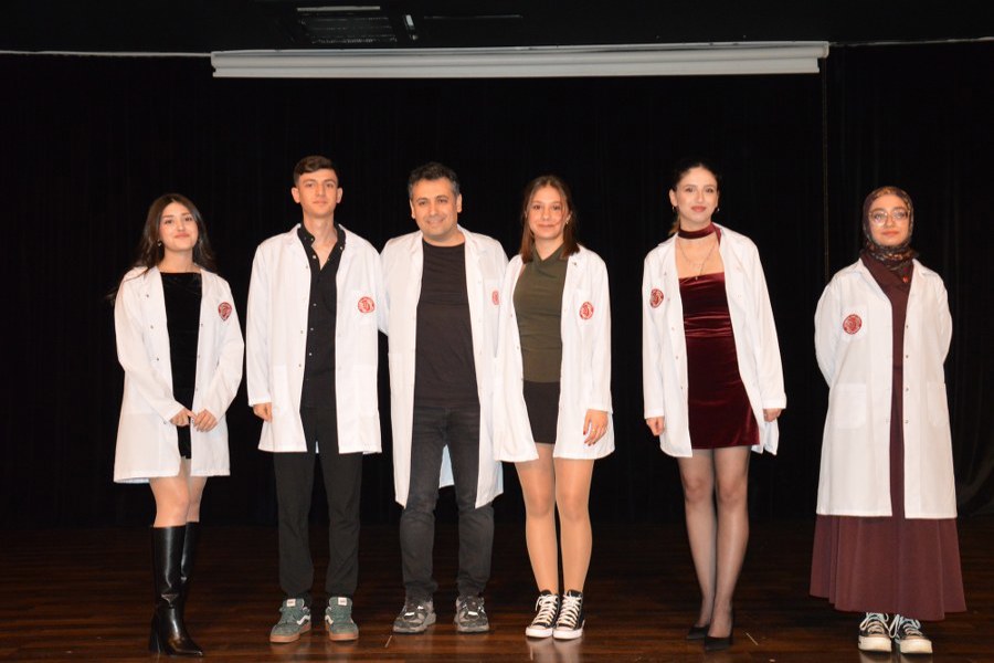 Öğrencilere beyaz önlükleri akademisyenleri tarafından giydirildi. Program, toplu fotoğraf çekiminin ardından sona erdi.
