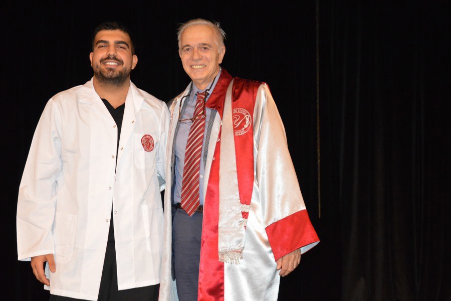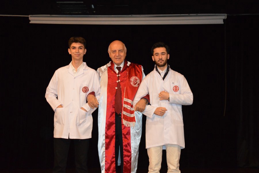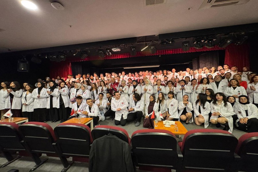 Üniversitemizde Tıp Fakültesi 1. sınıf öğrencilerinin beyaz önlük giyme töreni Alev Ofluoğlu Konferans Salonu’nda gerçekleştirildi. Törene Rektör Yardımcısı Prof. Dr. Ayşegül Topal Sarıkaya, Rektör Yardımcısı Prof. Dr. Emir Tan, akademisyenler, öğrenciler ve aileleri katıldı. Törenin açılış konuşmasını Tıp Fakültesi Dekanı Prof. Dr. Demir Budak yaptı. Konuşmasında öğrencilerin mesleklerinin ne kadar önemli ve kutsal olduğuna vurgu yapan Budak, hayatları boyunca dil, din, ırk ve renk ayrımı gözetmeksizin insan hayatını korumaları ve yaşatmaları gerektiğini ifade etti.