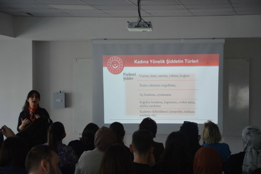 Seminerde, özellikle psikolojik şiddetin boyutlarına dikkat çekilerek; tehdit, hakaret, aşağılama, bireyin özgüvenini zedeleyici söz ve davranışlar ile kadının sosyal yaşam üzerindeki kontrolünün kısıtlanması gibi unsurların şiddet kapsamında değerlendirildiği vurgulandı. Ayrıca, kadının aile ve sosyal çevresiyle iletişiminin engellenmesinin de önemli bir şiddet türü olduğuna değinildi.