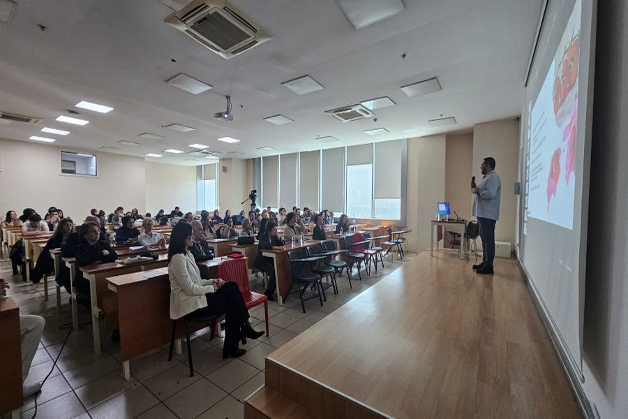 Etkinliğe Rektör Yardımcıları Prof. Dr. Emir Tan ve Prof. Dr. Ayşegül Topal Sarıkaya da katılım sağladı. Akademik ve idari personelin yanı sıra öğrencilerin de yoğun ilgi gösterdiği program, soru-cevap bölümüyle interaktif bir şekilde tamamlandı.