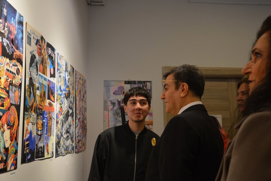 Serginin açılışı, İstanbul Yeni Yüzyıl Üniversitesi Rektörü Prof. Dr. Yaşar Hacısalihoğlu tarafından gerçekleştirildi. Açılışta kurdele kesen Prof. Dr. Hacısalihoğlu, daha sonra sergiyi gezerek eserler hakkında bilgi aldı.