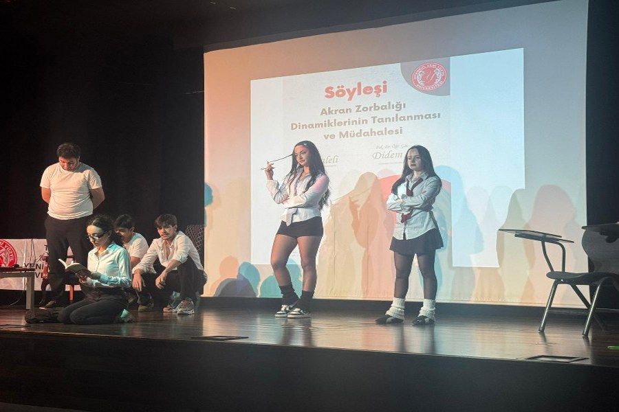 Güzel Sanatlar Fakültesi tarafından düzenlenen "Akran Zorbalığı Dinamiklerinin Tanılanması ve Müdahalesi" söyleşisi; sanatsal bir performans, psikolojik analizler ve hukuki bilgilendirmelerin yer aldığı kapsamlı bir programla gerçekleştirildi.
