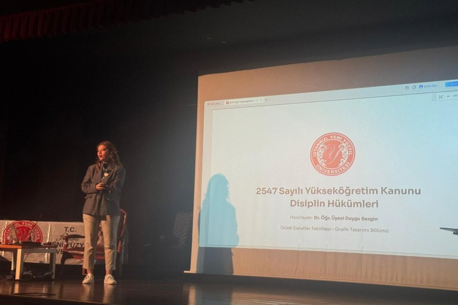 Etkinliğin son bölümünde ise Üniversitemiz Grafik Tasarım Bölüm Başkan Yardımcısı Dr. Öğr. Üyesi Duygu Sezgin, konunun idari ve yasal çerçevesini çizen önemli bir sunum gerçekleştirdi. Dr. Öğr. Üyesi Sezgin, "2547 Sayılı Yükseköğretim Kanunu Disiplin Hükümleri" kapsamında akran zorbalığının hukuki karşılıklarını, disiplin süreçlerini ve akademik ortamda şiddetin önlenmesine yönelik yasal yaptırımları detaylandırarak öğrencileri ve akademisyenleri bilgilendirdi.
