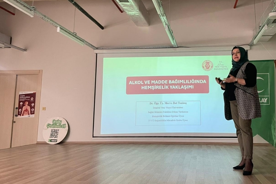 26 Aralık 2025 tarihinde, hemşirelik öğrencilerinin yoğun katılımıyla yüz yüze gerçekleştirilen seminerde Dr. Bat Tonkuş; alkol ve madde bağımlılığının birey, aile ve toplum üzerindeki etkilerini ele alarak, bağımlılık sürecinde hemşirelerin koruyucu, tedavi edici ve rehabilite edici rollerine ilişkin kapsamlı bilgiler paylaştı.