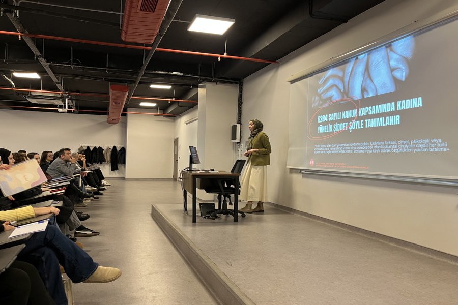 İstanbul Yeni Yüzyıl Üniversitesi Kadın ve Aile Çalışmaları Uygulama ve Araştırma Merkezi tarafından, Bayrampaşa Kampüsümüzde öğrenim gören 1. ve 2. sınıf öğrencilerine yönelik “KADES’i Tanı, Hayatını Koru” başlıklı bir bilgilendirme sunumu düzenlendi.