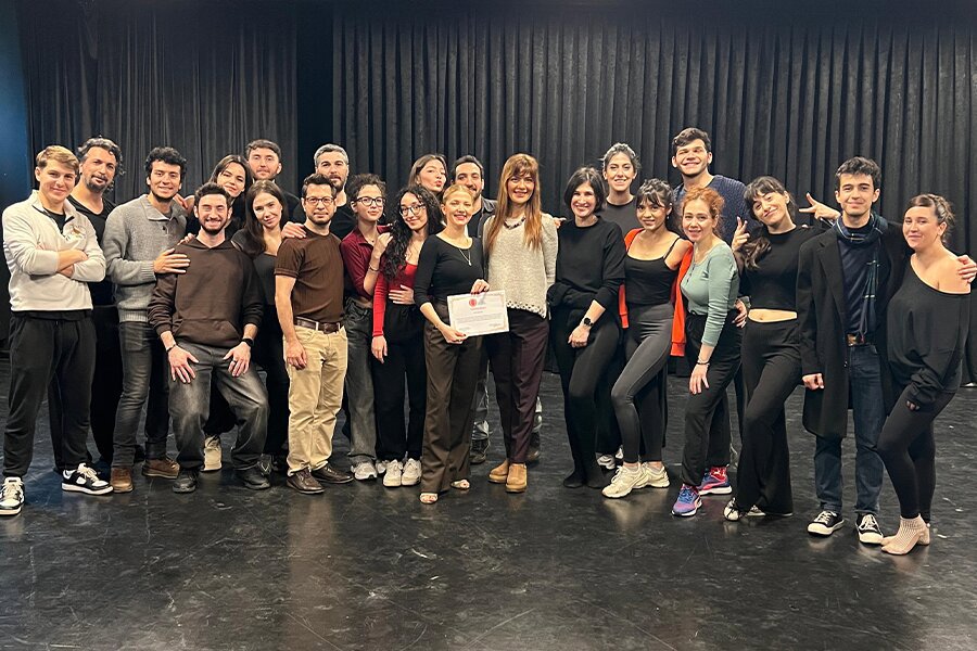 24 Mart 2026 tarihinde saat 12:00’de, Güzel Sanatlar Fakültesi Sahne Sanatları Bölümü tarafından -1. Kat Dans Salonunda düzenlenen ve tüm Sahne Sanatları Bölümü öğrencilerine açık olan “Tango Atölyesi”, Gülçin Yiğit yürütücülüğünde gerçekleştirildi. Etkinlikte, katılımcıların beden farkındalığı, ritim duygusu ve partnerle kurulan fiziksel iletişim becerilerini geliştirmeye yönelik çalışmalar yapıldı. Etkinliğin ilk bölümünde tango dansının temel prensiplerine dair kısa bir bilgilendirme yapılırken, müzik, hareket ve duygu arasındaki ilişki ele alındı. Ardından temel duruş, yürüyüş (caminata), denge ve ritim egzersizleri üzerine uygulamalı çalışmalar gerçekleştirildi.