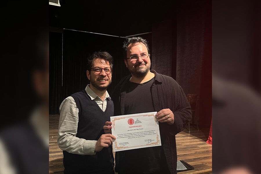 26 Mart 2026 tarihinde saat 13:00’te, Güzel Sanatlar Fakültesi Sahne Sanatları Bölümü tarafından Alev Ofluoğlu Konferans Salonunda düzenlenen ve tüm Sahne Sanatları Bölümü öğrencilerine açık olan “Stanislavski Aktif Analiz Yöntemi Atölyesi”, Prof. Dr. Nazım Uğur Özüaydın yürütücülüğünde gerçekleştirildi.