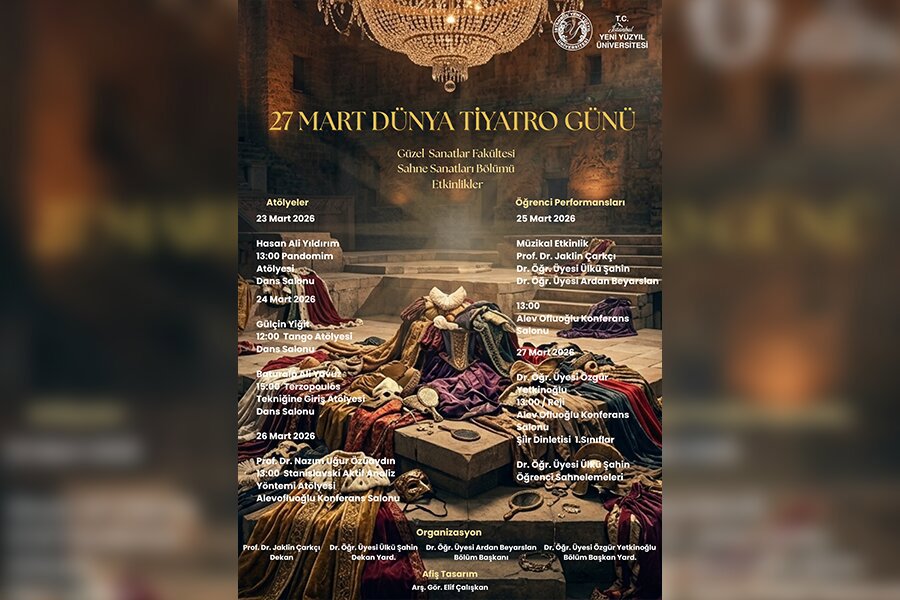 25 Mart 2026 tarihinde saat 13:00’te, Güzel Sanatlar Fakültesi Sahne Sanatları Bölümü tarafından Alev Ofluoğlu Konferans Salonunda düzenlenen ve tüm T.C. İstanbul Yeni Yüzyıl Üniversitesi öğrencilerine açık olan “Müzikal Etkinlik”, Prof. Dr. Jaklin Çarkçı, Dr. Öğr. Üy. Ülkü Şahin, Dr. Öğr. Üy. Ardan Beyarslan ve Dr. Öğr. Üy. Özgür Yetkinoğlu yürütücülüğünde gerçekleştirildi.