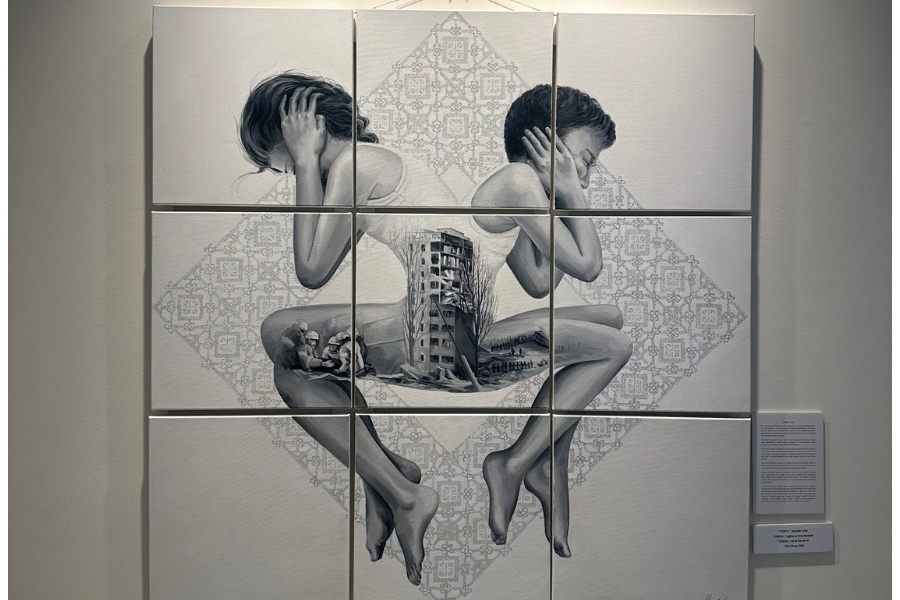 Serginin temel amacının, Ukrayna’da yaşanan insani krize ve savaşın yol açtığı yıkıma uluslararası kamuoyunun dikkatini çekmek olduğu belirtildi. Sanatçı, eserlerinde ekolojik felaketler, fiziksel tahribat, sivil kayıplar ve savaş suçları gibi temaları ele alarak çok katmanlı bir anlatı sunuyor. Çalışmaların, yağlıboya, enstalasyon ve linol baskı gibi farklı tekniklerin uyumlu bir kompozisyon içerisinde bir araya getirilmesiyle izleyiciye aktarıldığı ifade edildi.